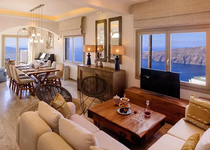 The spacious 100 m² Nastazia Residence Imerovigli offers proximity to a number of tourist attractions, such as the Skaros Rock, located only 0.9 km away. The apartment offers a view of the sea, and there is a terrace.